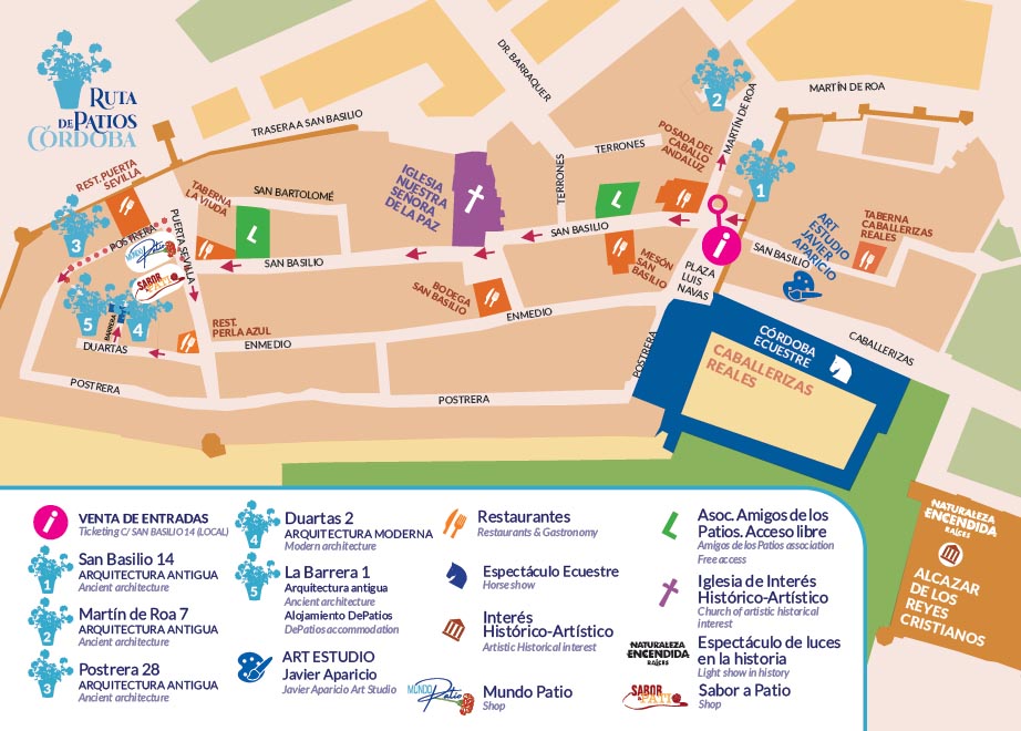 Nuestra ruta discurre entre 5 patios de concurso entre los más premiados y emblemáticos de nuestra ciudad de Córdoba. Enclavados en el histórico Barrio de San Basilio son una muestra extraordinaria de esta herencia cultural.